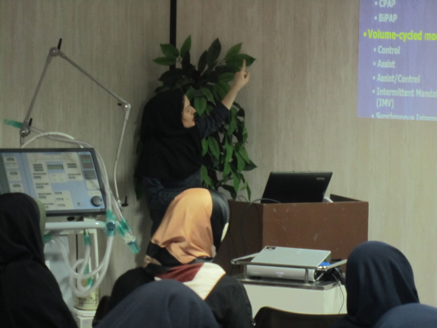 در تاريخ 26/8/90 كلاس آموزشي طرز كار با دستگاه ونتيلاتور با حضور پرسنل بخش هاي داخلي - اتاق عمل -ccu -اورژانس راديولوژي و ديگر پرسنل علاقمند در سالن اجتماعات بيمارستان حضرت ولي عصر (عج) شهربابك برگزار شد. در اين كارگاه دكتر آنيتا قاسميه متخصص بيهوشي در خصوص آيتم هاي مختلف دستگاه و نحوه تنظيم آنها در بيماران مختلف توضيحات لازم همراه با كار عملي با دستگاه را ارائه نمود.