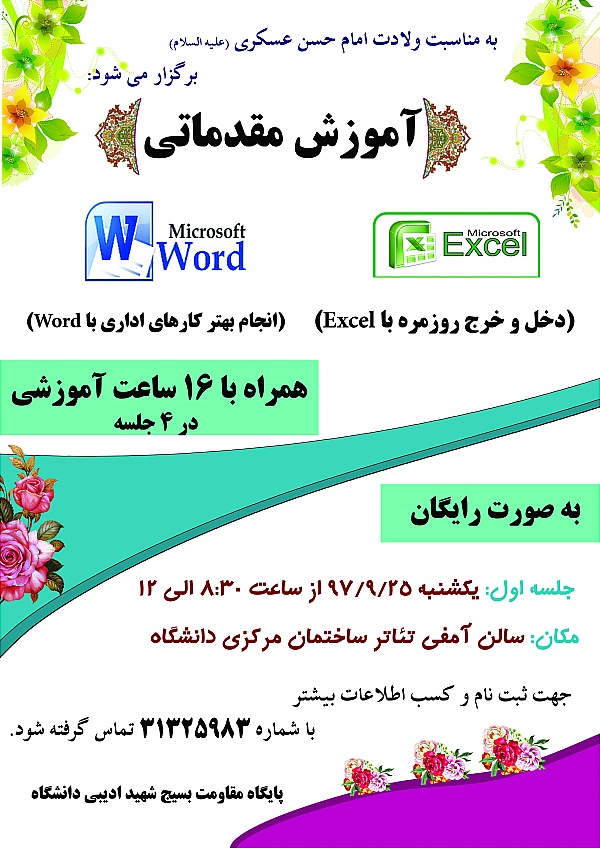 به گزارش روابط عمومی پایگاه مقاومت بسیج شهید ادیبی دانشگاه، این دوره آموزشی به صورت رایگان و دارای 16 ساعت آموزشی بوده که طی 4 جلسه برگزار می شود.